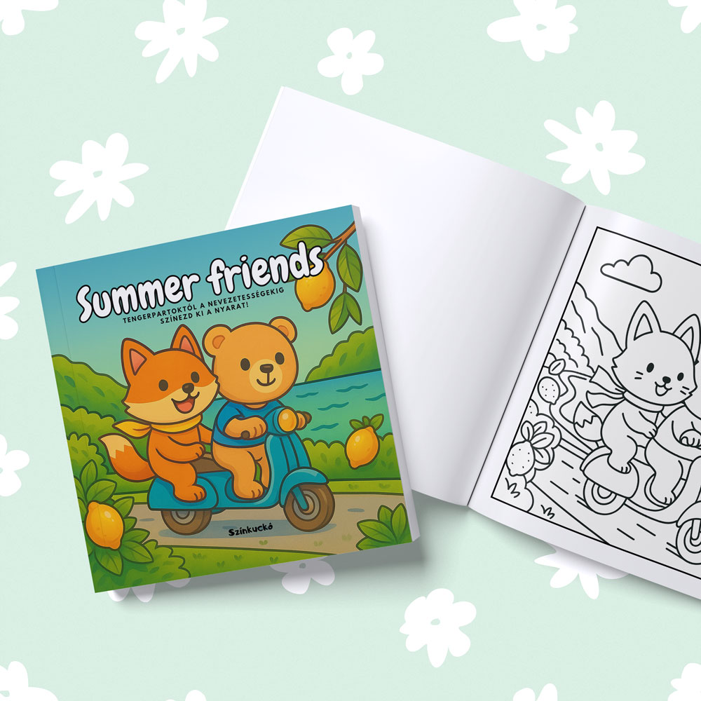 A színezés ritmusa segít lelassítani a gondolatokat, elengedni a feszültséget és visszatalálni egy nyugodtabb belső állapothoz. A Summer Friends színező egyszerre könnyed és megnyugtató: egy olyan könyv, ami emlékeztet arra, hogy a pihenés és az öröm nem luxus, hanem szükséglet. Ha szereted az állatos, barátságos és napsütéses hangulatú jeleneteket, és olyan színezőt keresel, ami valóban feltölt, akkor ez a könyv a tökéletes társad lesz.